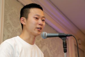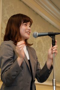 会場の熱気が最高潮になったところで、新入社員の挨拶。